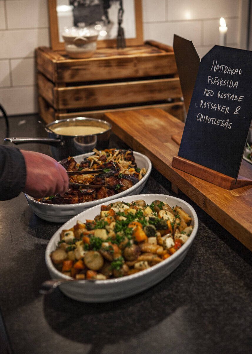 From den 24 nov serverar vi dagens lunch inkl. stor salladsbuffé, måltidsdryck, hembakat bröd, kaffe/te och kaka.