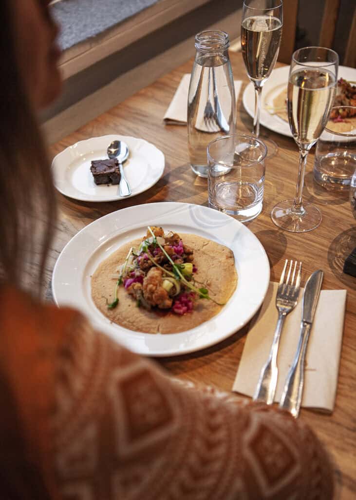 Fjällrestaurangens kvällsmeny är noggrant sammansatt med rätter som tar tillvara på det bästa av säsongens ingredienser. Här kan du njuta av allt från färska fiskar till smakrika rätter med ren- och nötkött, samt skogens egna svampar och bär.